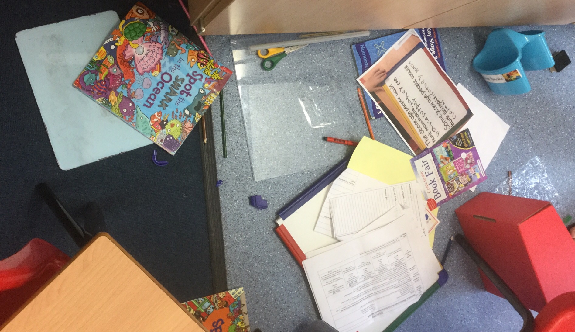 The most recent scenario that happens is: He doesn’t return to class, so the other children eventually end up having to tidy up after him. I love my class for many, many reasons. One of the reasons is that they are more than happy to tidy up after him. Even though they didn’t make the mess themselves, they will happily salvage my sanity by making sure that his work station is tidy and any broken resources are thrown away correctly. I always make an conscious effort to announce that, under no circumstances is it acceptable for this to end this way, but thank you so much for being so kind in offering to do that for him.
