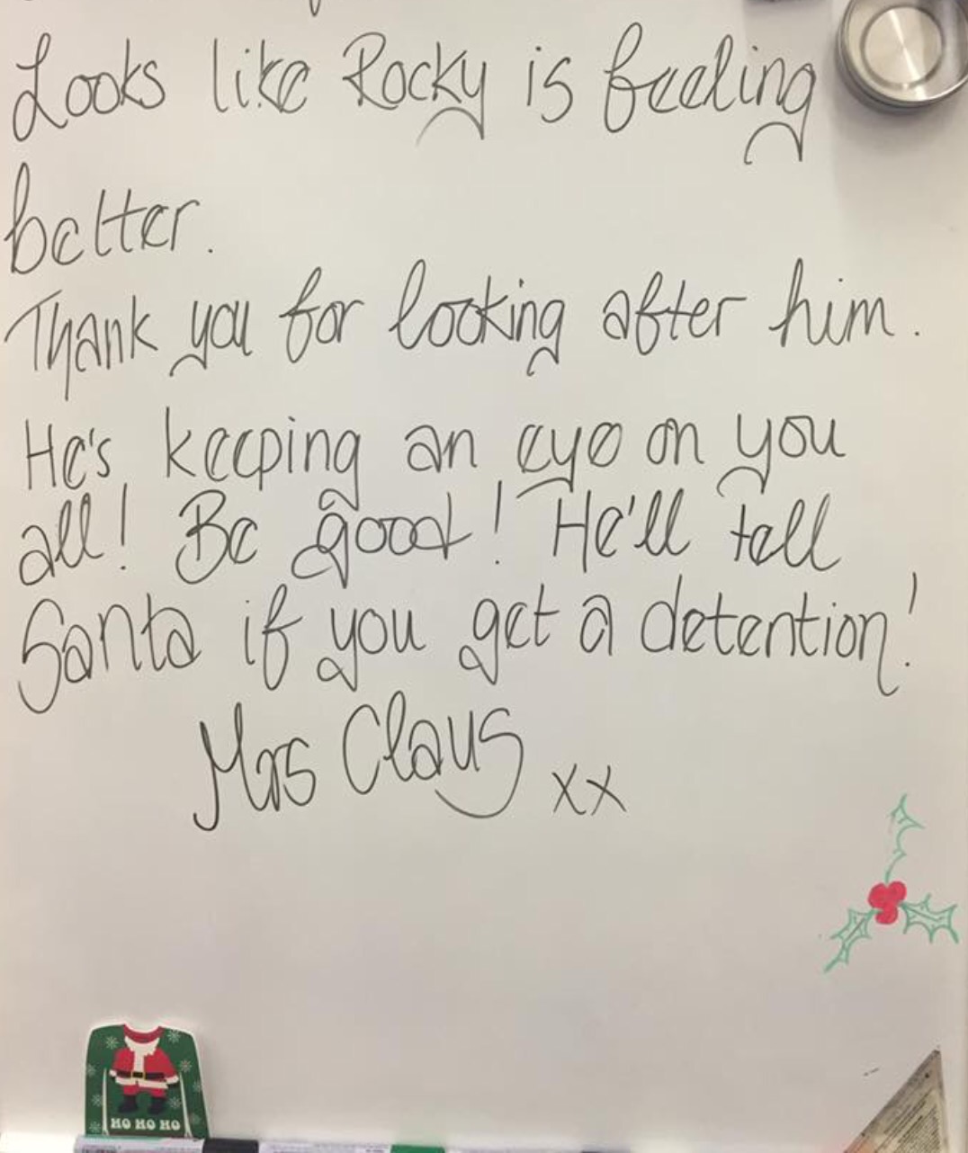 Whilst watching your class and sending my reports, you pretended to be the lovely Mrs Claus, you wrote on the board and hid me in places, just to see the look on the children’s faces.