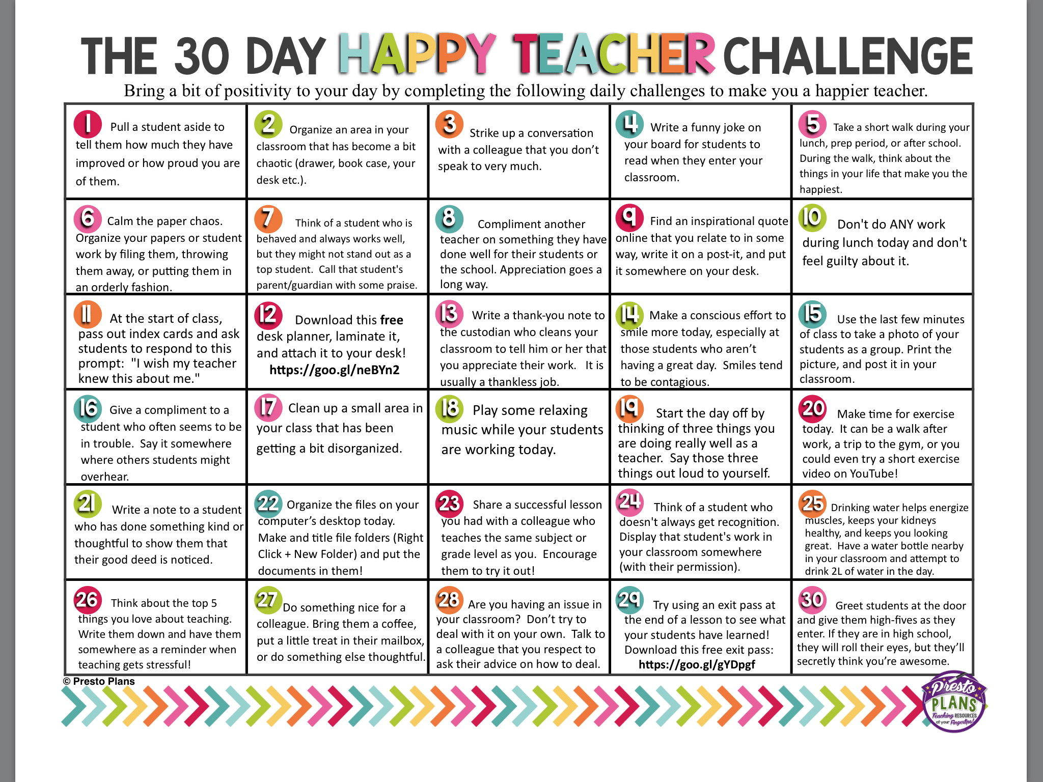 3. What exactly do I need to do in order to consider myself a happy teacher? I took a look at some of the “challenges” involved to judge whether it would be do-able. Achievable.